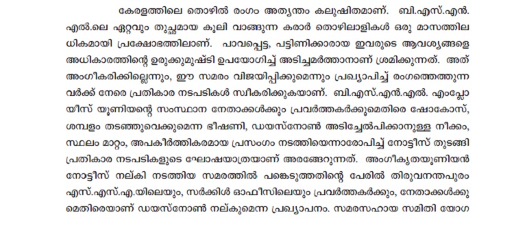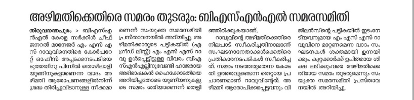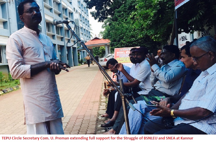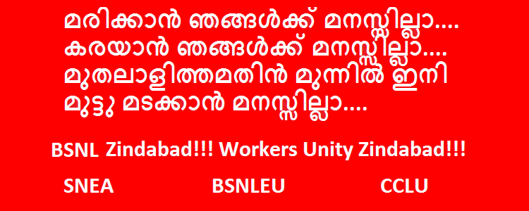 Dear Comrades, this jungle Raj will not continue in Kerala. The Administration cannot defeat the brave movements of SNEA-BSNLEU-CCLU against corruption by any type of vindictive actions or suspensions. We are fighting for Justice. We are fighting against corruption. Our struggle is for protecting BSNL .