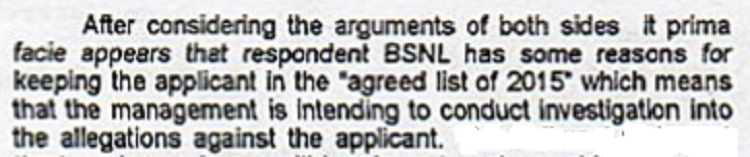 See their Brief of Facts before Hon. CAT for the continuance of an Officer under Serious Vigilance Inquiry as per BSNLCO.
