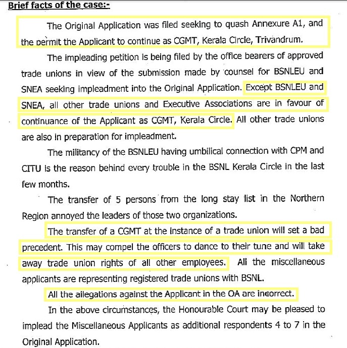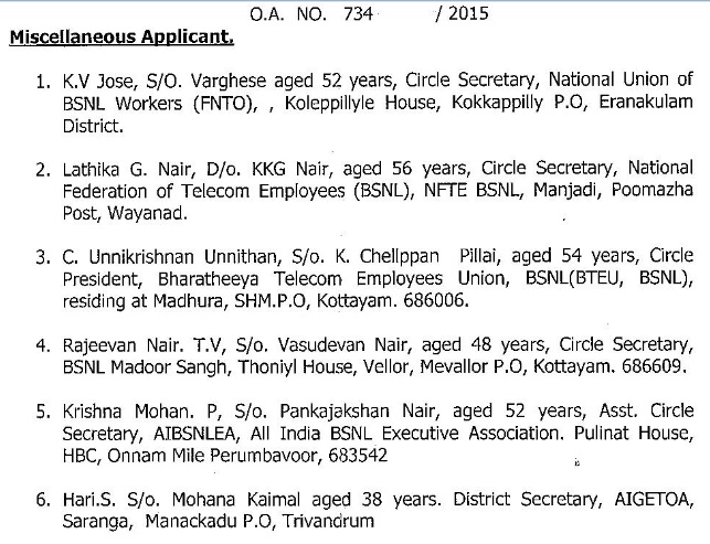 We are ashamed to report that six unions AIBSNLEA, FNTO, NFTE BSNL, AIGETOA, BSNLMS, BTEU in BSNL Kerala Circle approached Hon. CAT Ernakulam for impleading in the case of Sri MSS Rao.