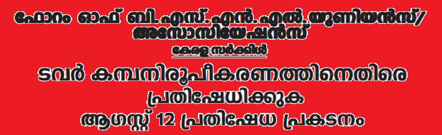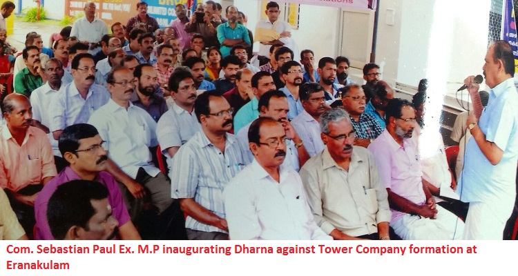 BSNL Employees unanimously protested against the Formation of separate Tower Company. Mass Dharna were held in all SSA HQs.