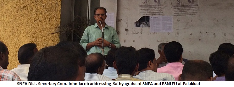 Joint Agitation committee of BSNLEU and SNEA Continued its trade union programs as Sathyagraha and Total Non Co-Operation to withdraw all vindictive actions like Suspensions, Charge Sheets, Dies-non and Vindictive Transfers. All Sathyagraha center was filled with valiant comrades of the Joint Agitation Committee.