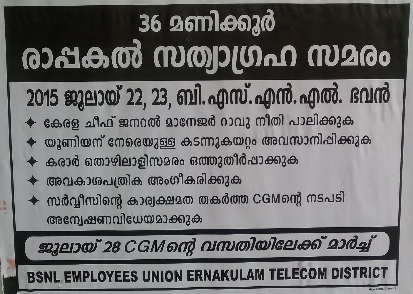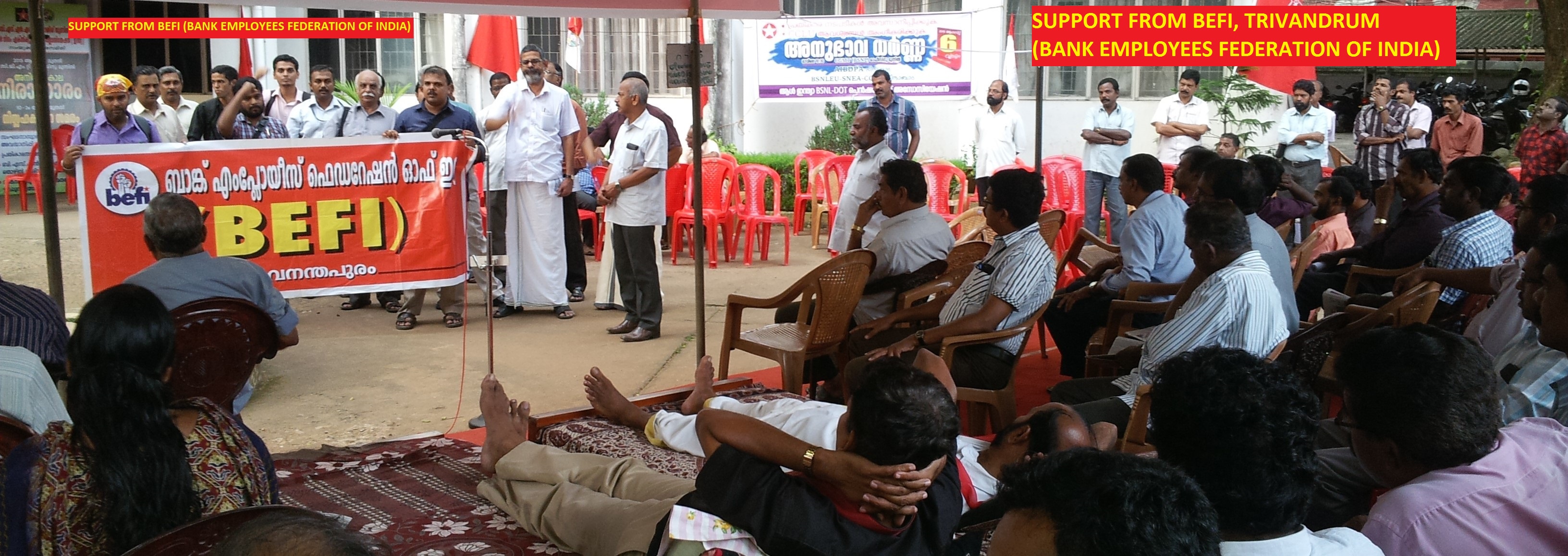 Dear Comrades , We are unable to find any objection for participating in demonstrations or Dharna, because we believe and reiterate that these are the legitimate right and mode of any Employees’ organization to show its protests to its Managements. But we are shocked by the above action from one of the office bearer may be some “ thanks giving for favors received”. We expect all may desist from such moves in future and be the part of working class, and fight against corruption and fight for BSNL.