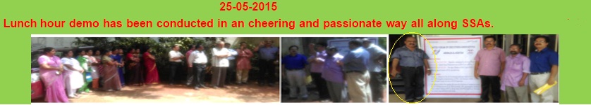 Massive protest demonstrations were successfully held in all SSA HQ, Circle office and major offices on 14.09.2015 against massive victimizations and vindictive actions by Shri MSS.Rao. From 15th September 2015, Dharna in front of all offices will be conducted along with non-cooperation.