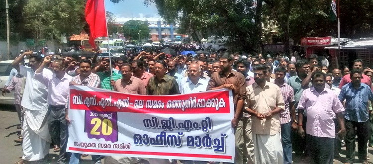 Dharna Against the formation of Separate Tower Company by United Forum of Unions and Association and Sathygraha to withdraw all vindictive action against Trade Union and Association Leaders and Activists successfully held throughout Kerala.