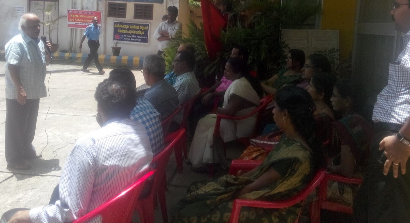The protest demonstrations were also successfully held in all circles as well as at Corporate office. At Corporate Office, Com. AA.Khan, President SNEA presided over the meeting. Comrades. GL.Jogi, Chairman SNEA, K.Sebastin, GS SNEA, Swapan Chakraborty, Dy.General Secretary BSNLEU and VAN.Namboodiri, President BSNLCCCWF spoke on the occasion. A large number of members from NTR and Corporate Office of SNEA & BSNLEU have participated in the programme.