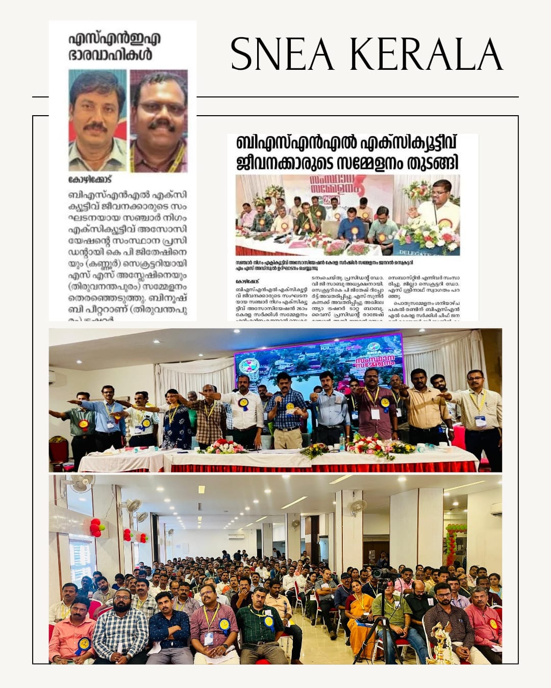 SNEA Kerala Circle Conference was successfully held on 28/6/2024 & 29/6/2024 at Hotel Calicut Tower, Kozhikode. The following Circle Office Bearers were unanimously elected :